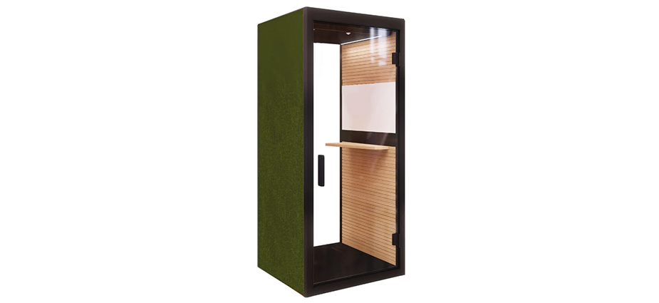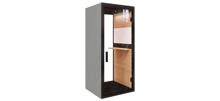 The soundproof phone booth allows for better communication as well as concentration in a standing or sitting position.