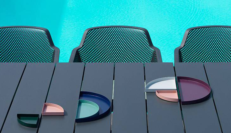 It is a versatile furniture element thanks to its lightweight and stackability.